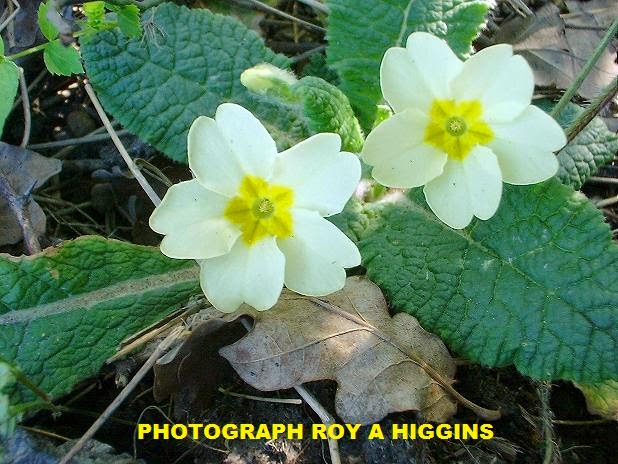 In woodland and hedgerows grow wild primroses. Our gardens are full of primroses, of every hue, at this time of the year, given to mothers by small children on Mothers Day, to sit on windowsills in pots, or plant outside in borders or planters along with miniature daffodils, but this is the native variety and you can have it in any colour just as long as it's pale yellow.